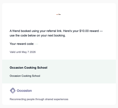 When a referral is successful — meaning a friend completes a booking — your customer automatically receives a reward coupon by email.