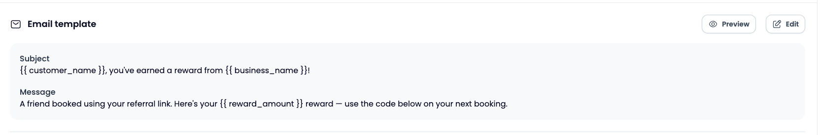 You can customize the email your customer receives when a friend successfully books using their referral link. This lets you match the message to your brand's voice and make the reward feel more personal.